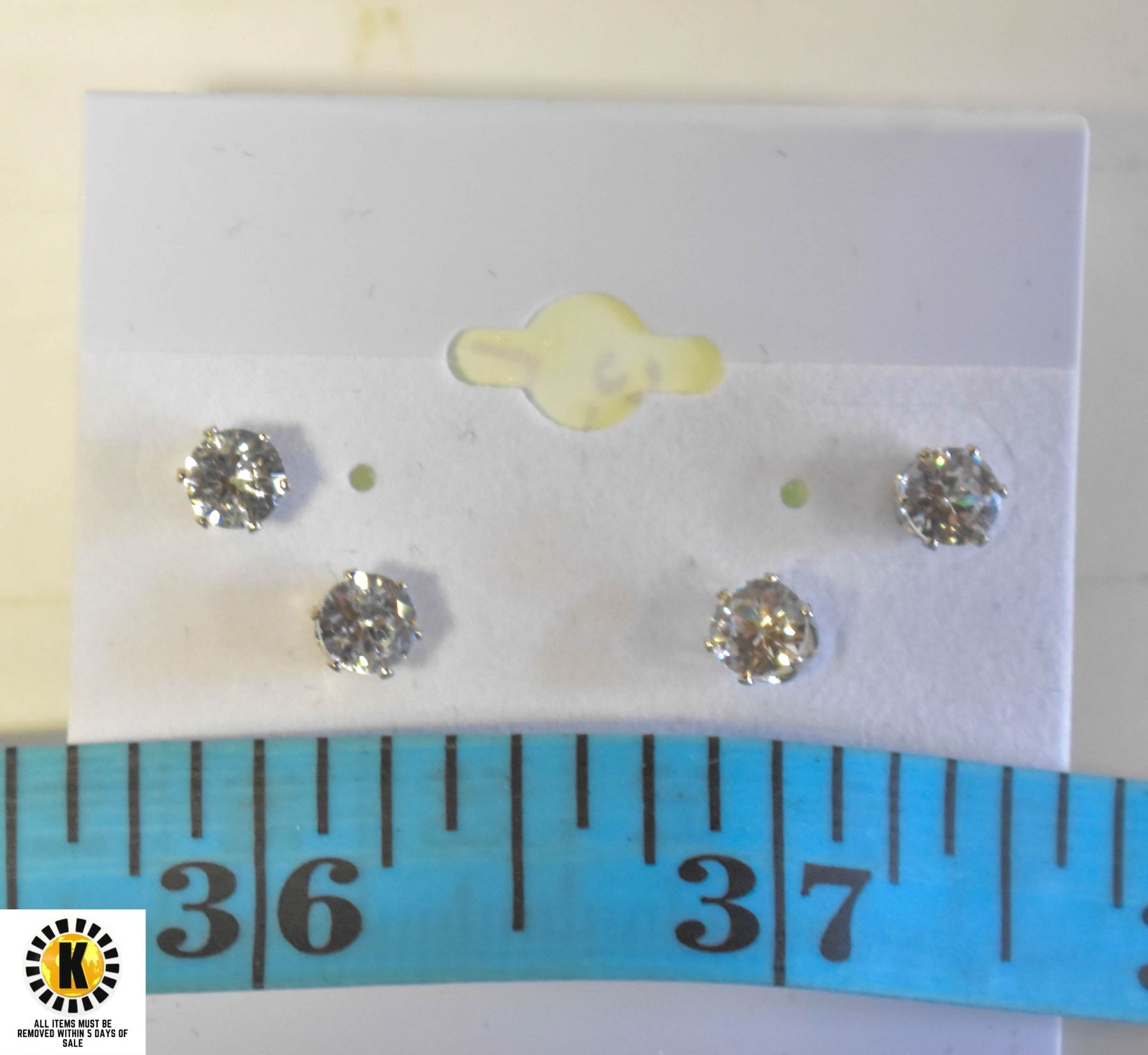 2 PAIR 5 MM SILVER TONE CZ EARRINGS
