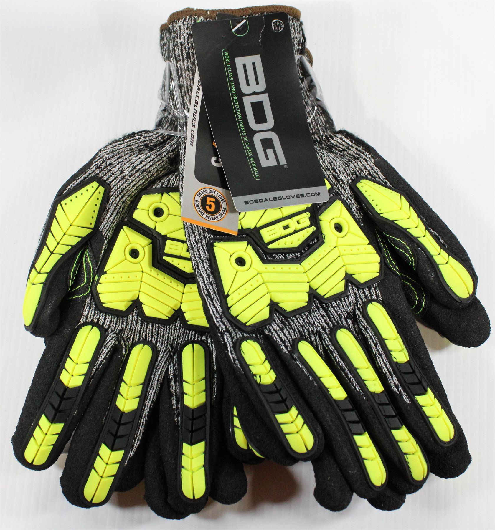2 PAIR BDG IMPACT/CUT RESISTANT LVL 5 HI-VIZ WORK GLOVES SIZE L
