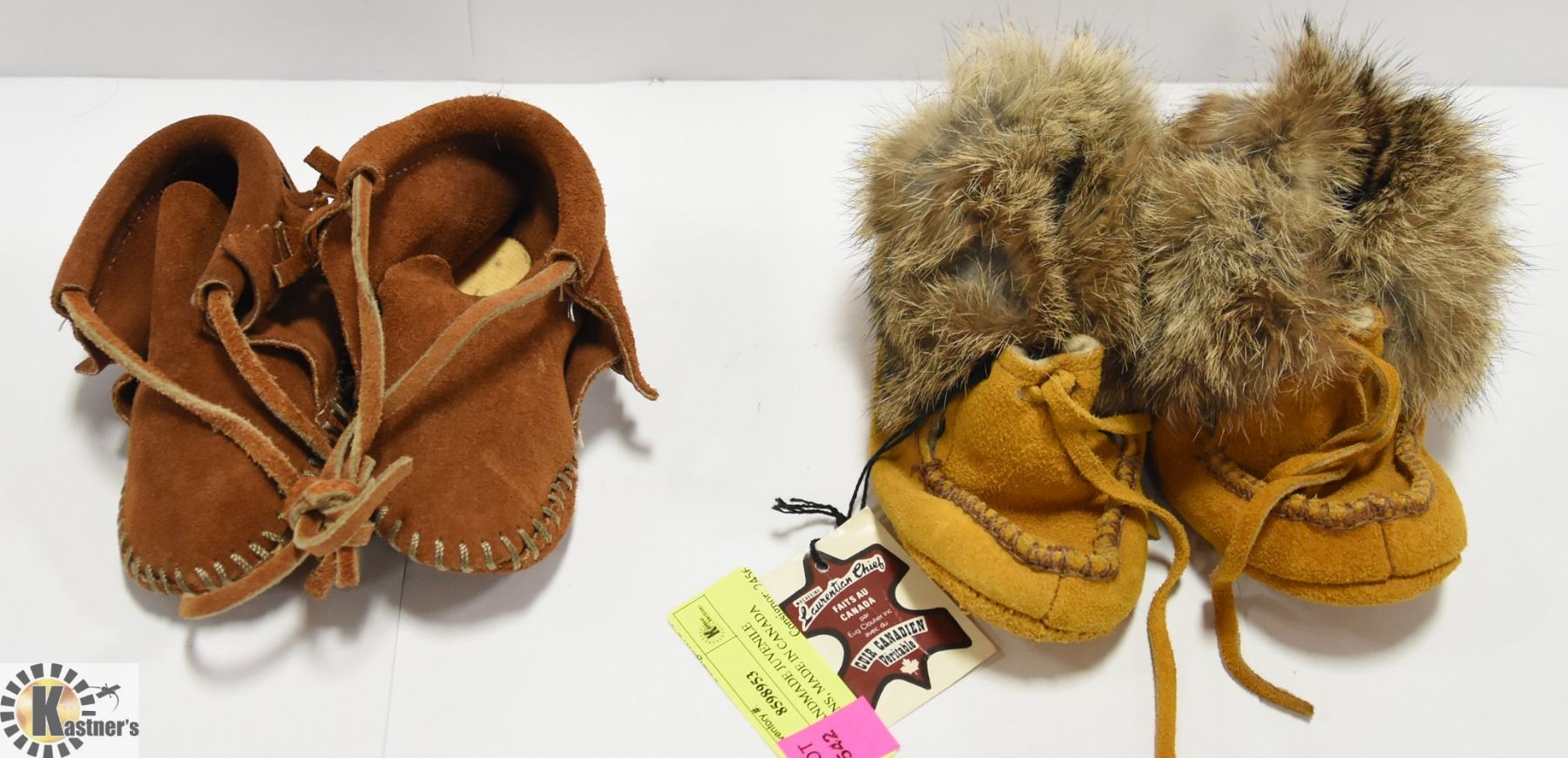 2 PAIR HANDMADE JUVENILE MOCOSSINS, MADE IN CANADA