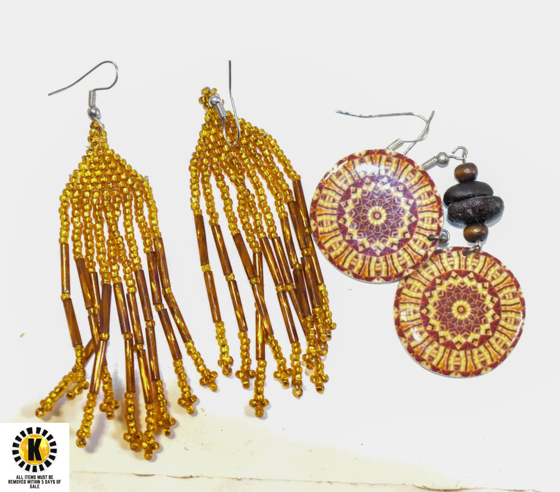 2 PAIRS HANDMADE INDIGENOUS BROWN TONE EARRINGS