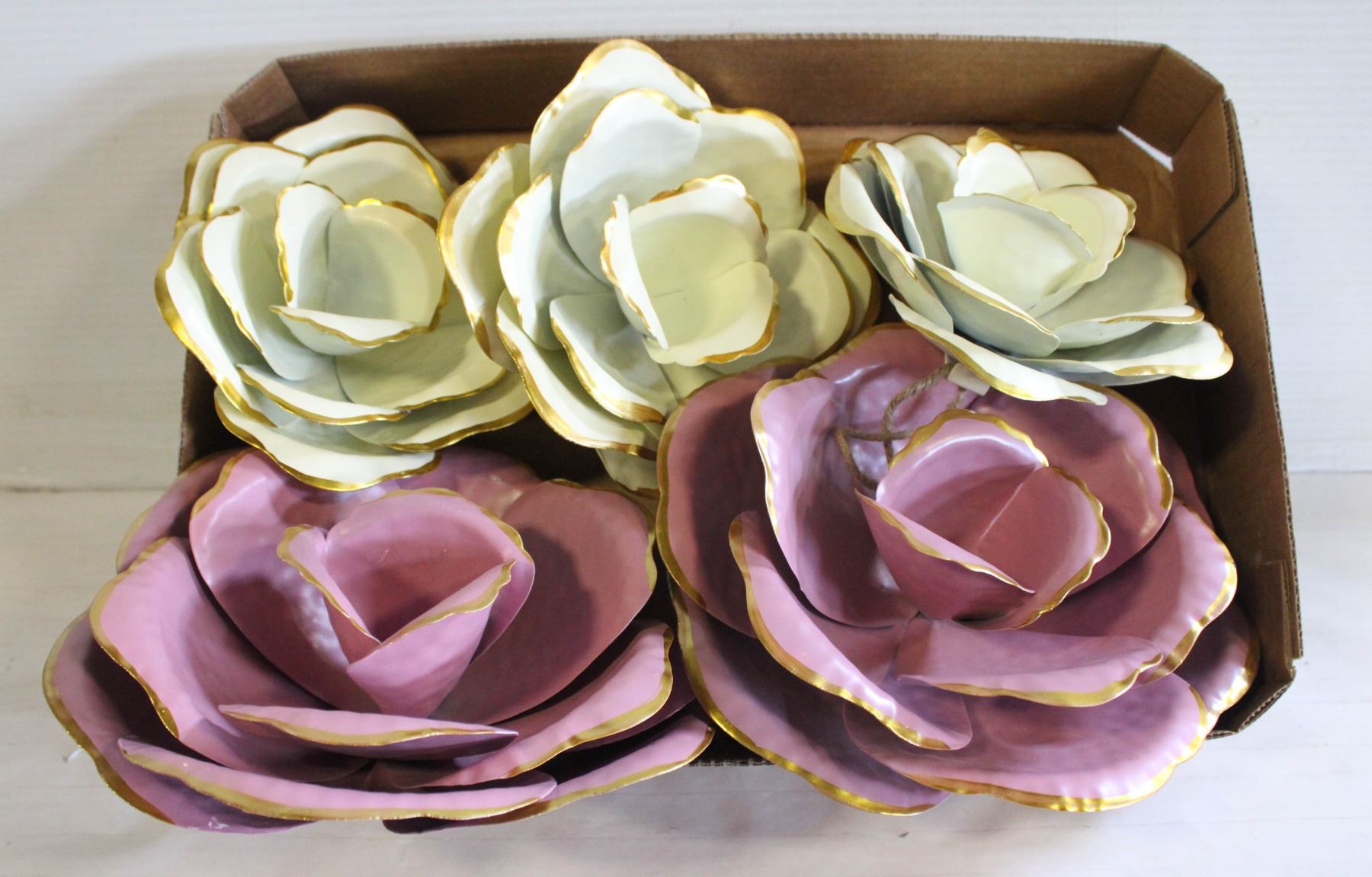 2 PAIRS OF 3D METAL WALL HANGING FLOWERS