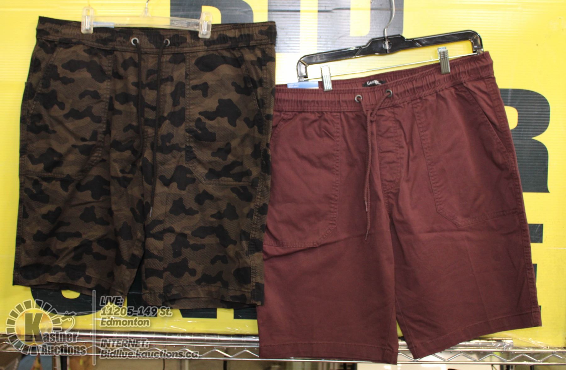 2 PAIRS OF SHORTS SIZE 36 BURGANDY AND CAMOFLAUGE