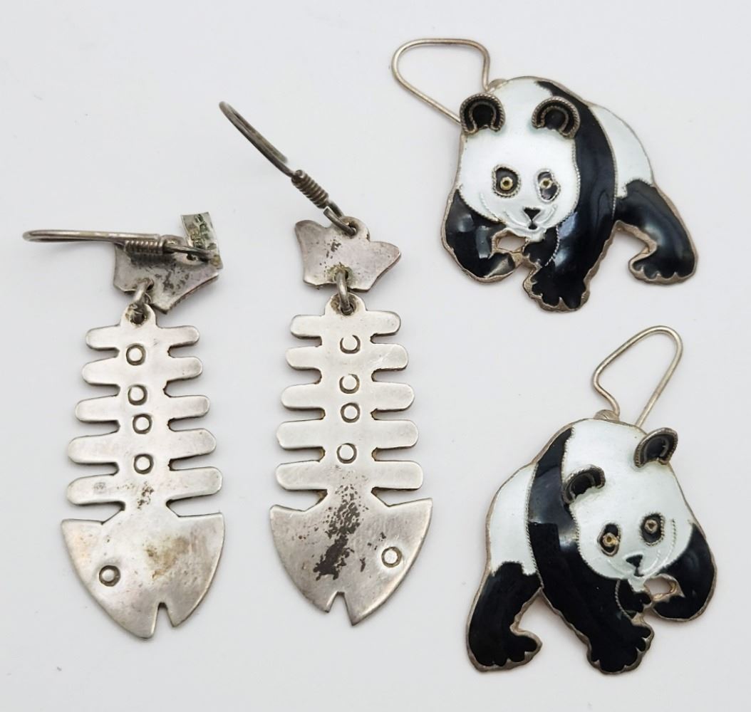 EARRINGS-FISH-PANDAS WITH BLACK AND WHITE ENAMEL-TOTAL 12 DWT