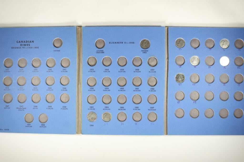 CONTAINS: (23 COINS) AND #2 DIME 1937-TO DATE CONTAINS: (8 COINS) IN WHITMAN ALBUMS