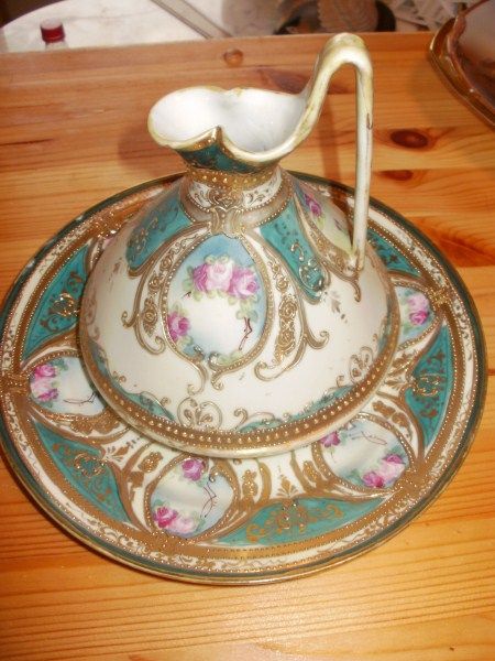 2 PC. 7.5" NIPPON EWER, TURQUOISE AND GOLD W/UNDERPLATE