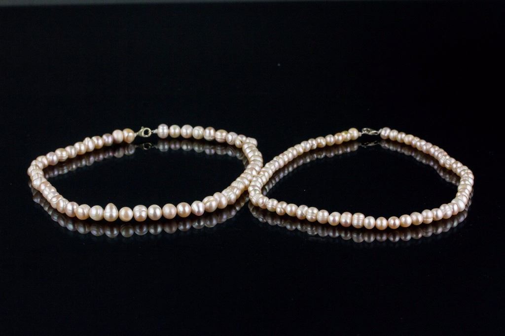 Two pieces of Chinese pearl necklace; comprised of numerous pearls; of natural shape; D: 22 cm (each), 73 grams (both)