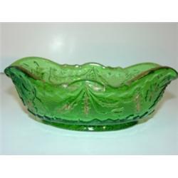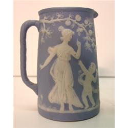 2 piece lot consisting of Wedgwood style pitcher and small Delaware glass serving dish. Pitcher is unmarked and dish shows signs of wear to gold decoration. Pitcher: 4.5" H; Dish: 5.5" L