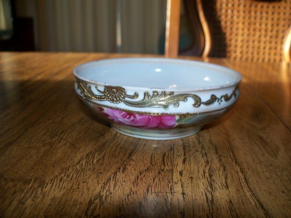 2 PC. NIPPON BOWL AND CREAMER, WHITE W/RED FLOWERS