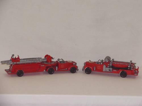 2 PC. SET OF ELDON FIRE TOYS: 15 1/2" SEAGRAVE MOTORIZED ENGINE and 22" TILLARD LADDER TRUCK W/ ORIGINAL PAPER LABELS;
