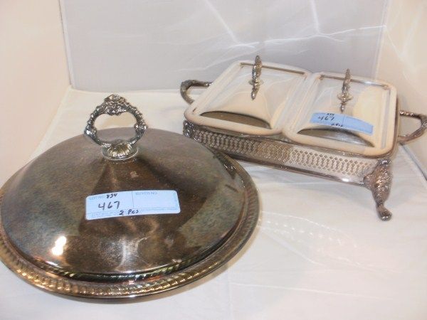 2 PC. SILVER PLATE FIRE KING CHAFFING DISH AND COVERED VEGTABLE DISH