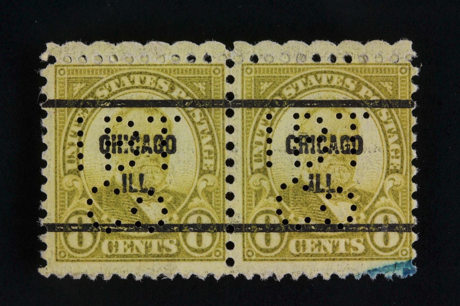 Two pieces of United States 1923 eight cents stamps; pre cancel Chicago, IL; 2.6 inch x 4.1 inch