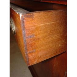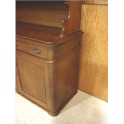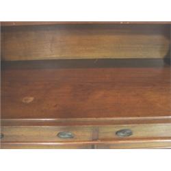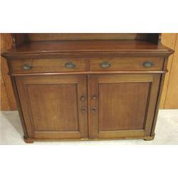 2 PIECE VICTORIAN MAHOGANY OPEN TOP HUTCH. Two raised panel doors on bottom with two dovetailed drawers. Dovetailed casing on bottom. Top is not original to bottom. Original hardware. 30.5" H to top of base, 80" H to top of top, 55.5" W, 22.25" D