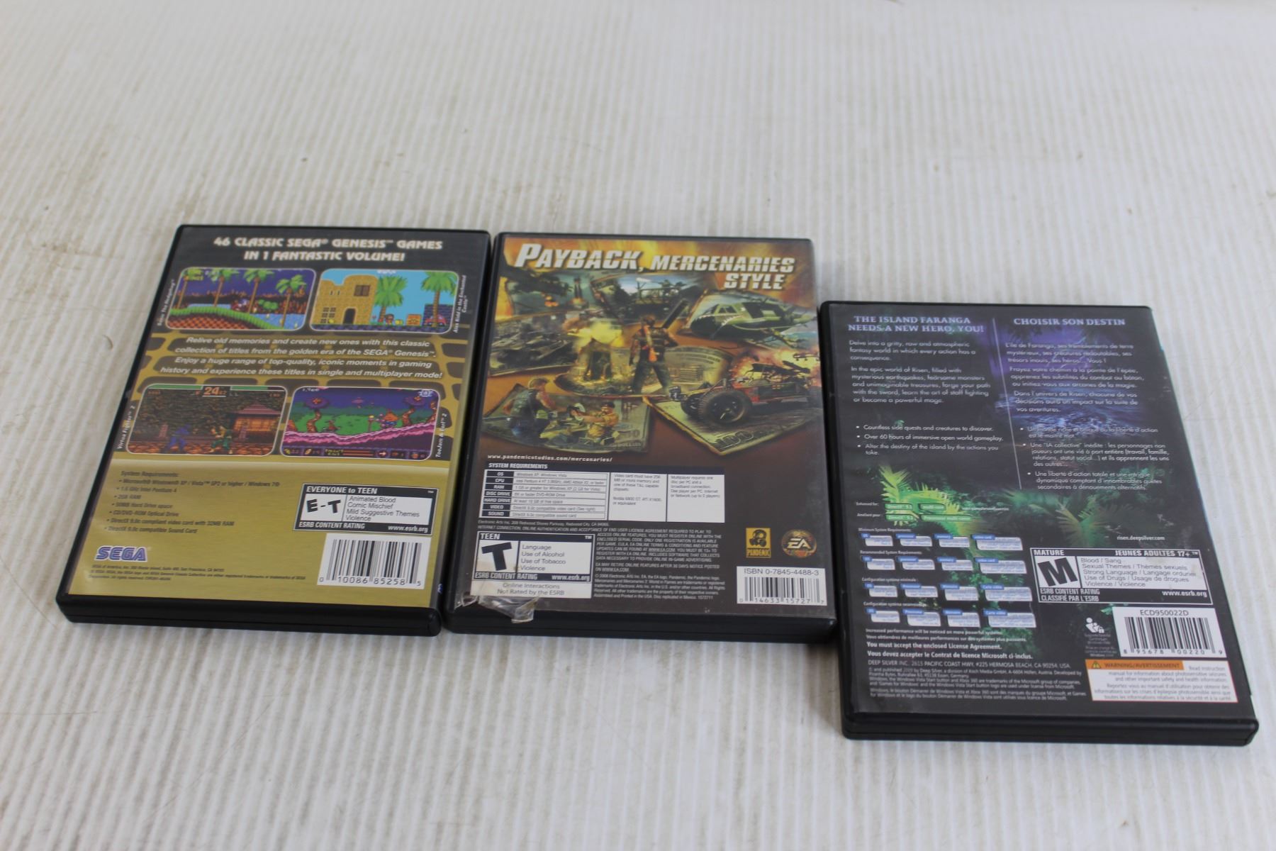 (2) PC Video Games - SEGA Genesis Classic Collection: Gold Edition, Mercenaries 2: World in Flames, (1) Games for Windows - Risen