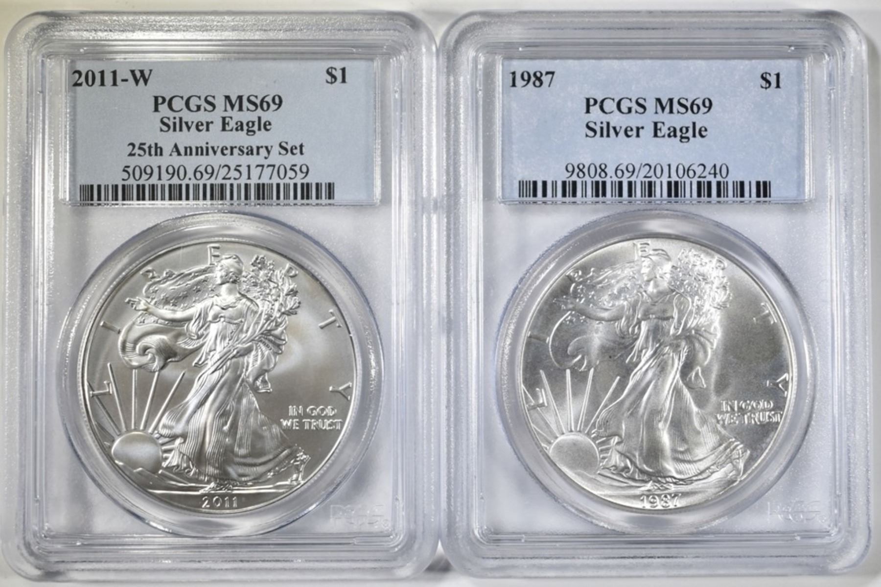 1987 MS-69 & 2011-W MS-69 25TH ANNIVERSARY.    ESTIMATE $100 - $125.