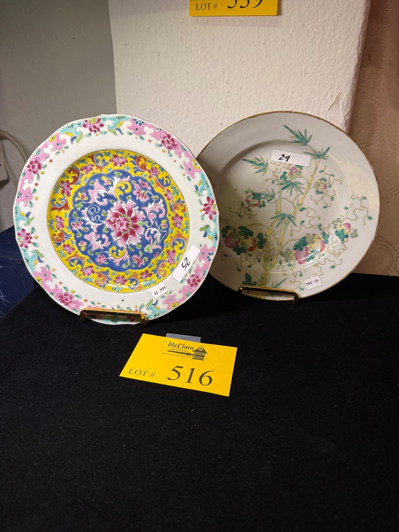 ANTIQUE DAO GUANG PERIOD PORCELAIN PLATE & ANTIQUE GUANGSU PERIOD PORCELAIN PLATE (2 PCS) (DOES NOT INCLUDE STANDS)