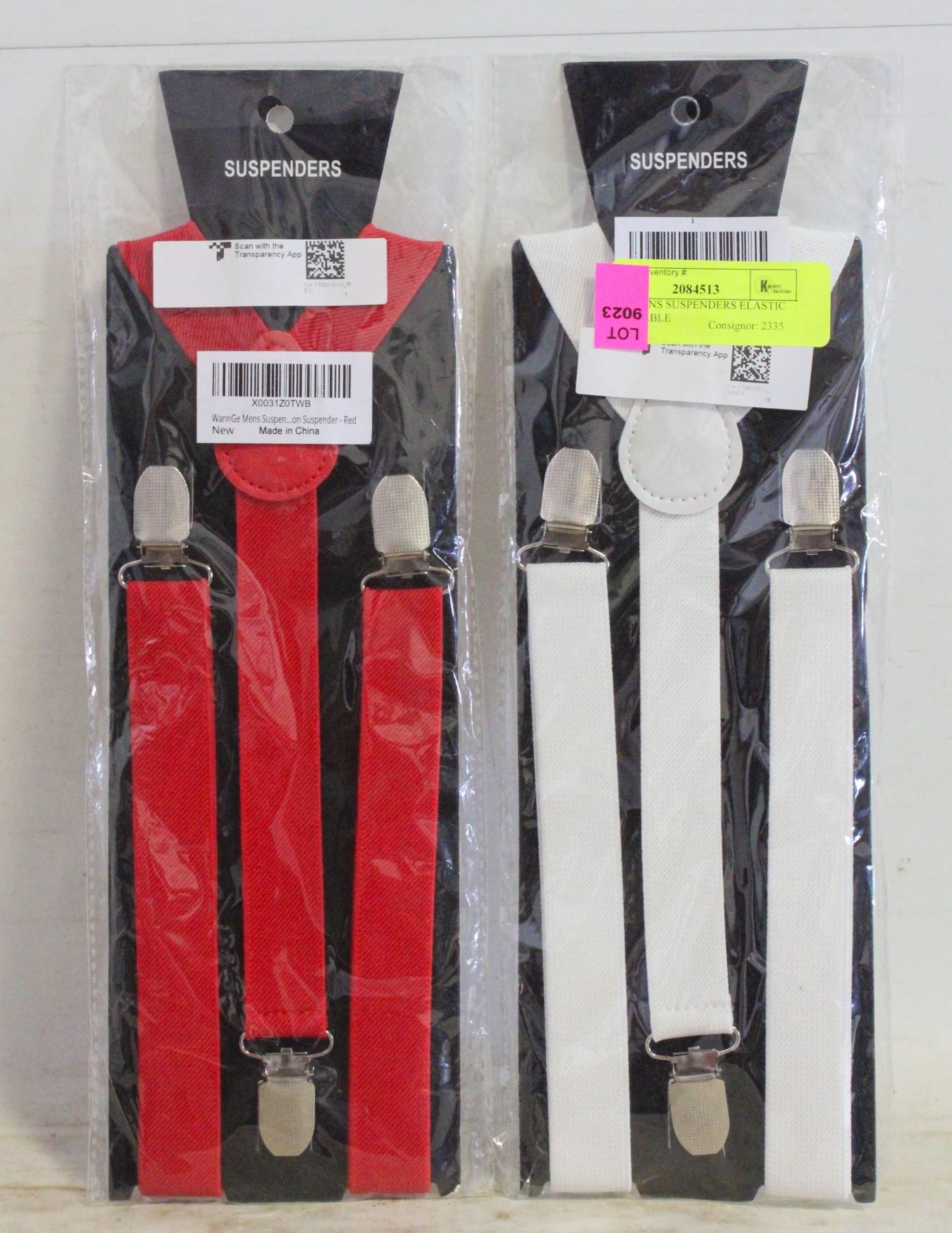 Y BACK CLIP ON SUSPENDER 1 INCH RED AND WHITE NEW