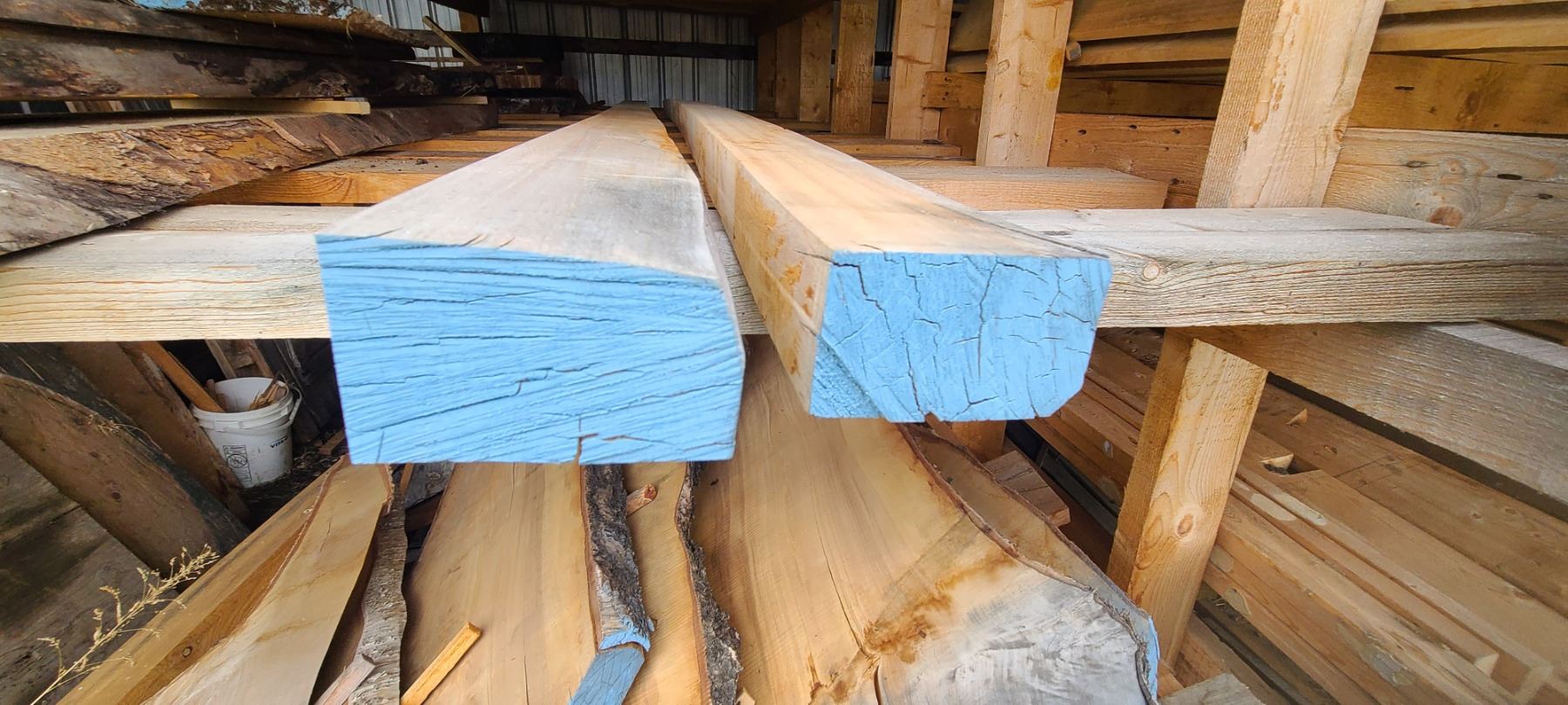 2 PCS OF BIRCH BEAMS 12.5 FOOT X 4.5 INCHES X 2 3/4 INCHES THICK