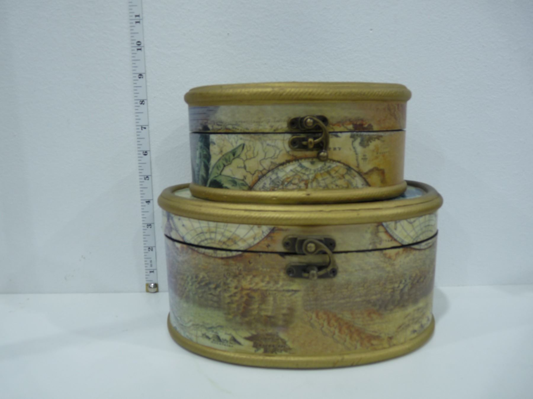 2 PCS VINTAGE DECORATIVE FELT-LINED ROUND CASE