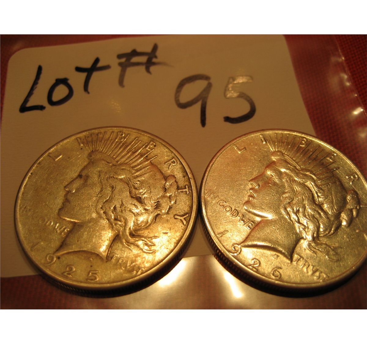 (2) PEACE DOLLARS 90% SILVER (1) 1926-S, (1)1925S