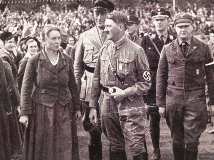 2 PHOTOS OF HITLER WITH STORY IN GERMAN ON BACK, FROM GI