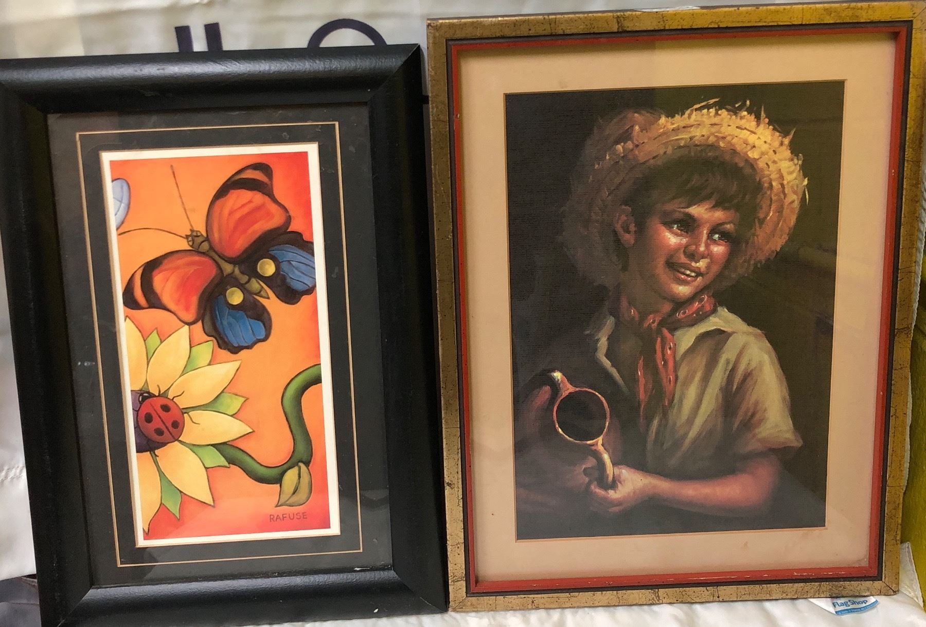 2 PIECE ASSORTED FRAMED ART PIECES - LARGER ONE 13IN X 17.5IN