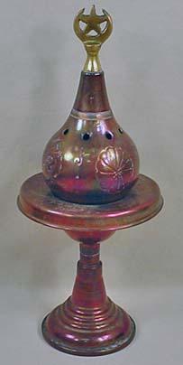 2 PIECE BRASS AND COPPER COLOR HINDU INCENSE BURNER - We believe this is an incense burner, please see pics to best judge for yourself.