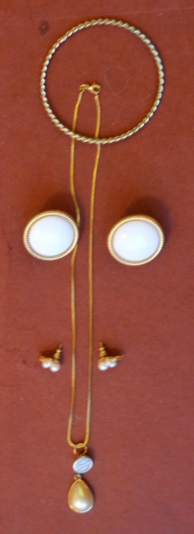 2 PIECE JEWELRY SET. SET INCLUDES A PAIR OF PIERCE EARRINGS AND A NECKLACE