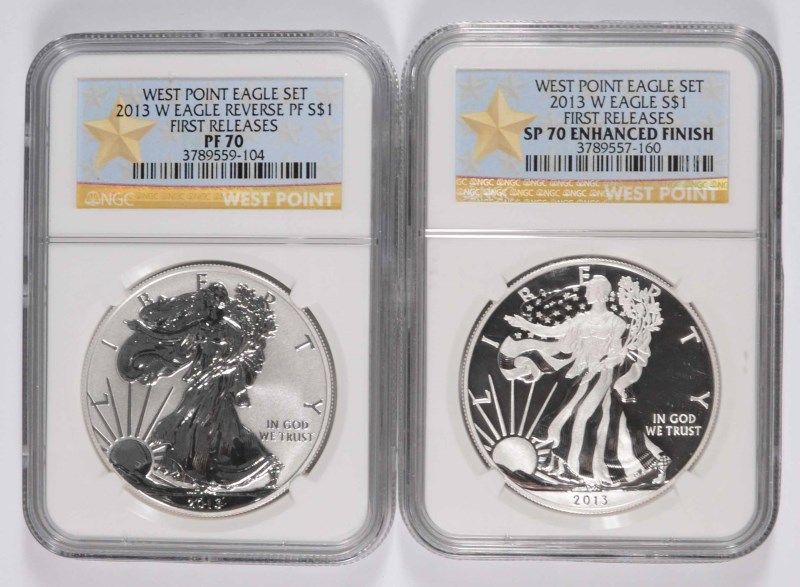 2 PIECE SET 2013-W AMERICAN SILVER EAGLE NGC PF-70, & SP-70
