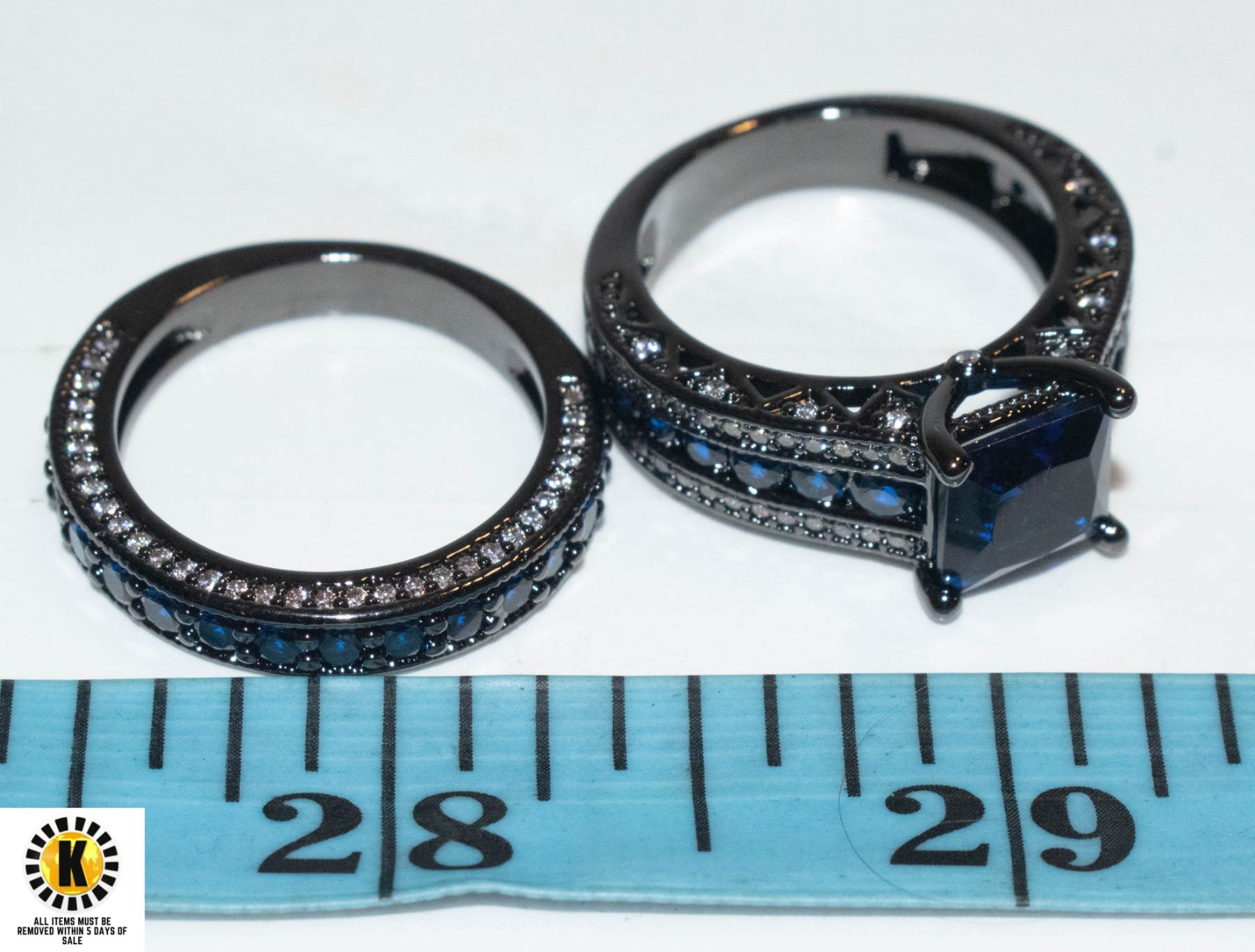 WITH BLUE SAPPHIRE COLORED ACCENTS IN BOTH RINGS SIZE 8.25ÿ