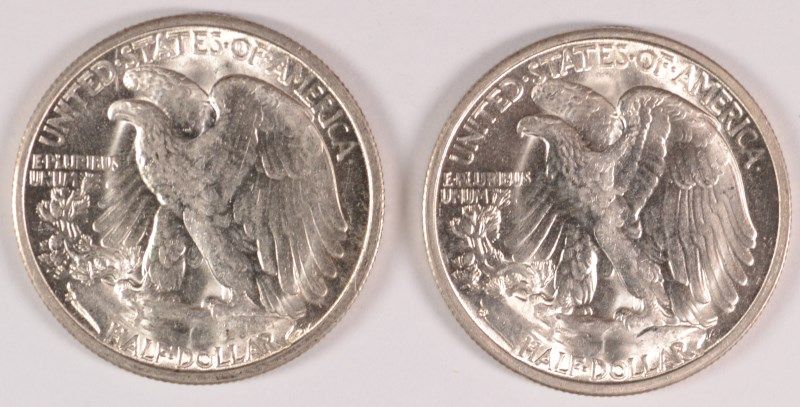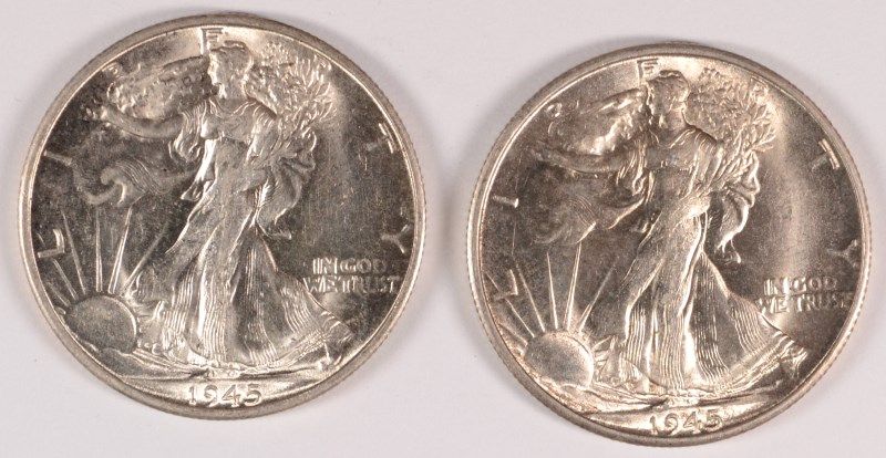 ( 2 ) PIECES 1945-S WALKING LIBERTY HALF DOLLAR, SOLID MS-64 WHITE!