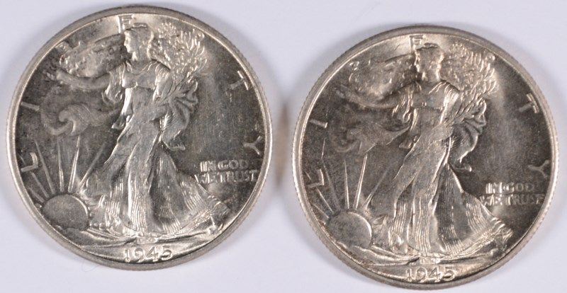 ( 2 ) PIECES 1945-S WALKING LIBERTY HALF DOLLAR, SOLID MS-64 WHITE!