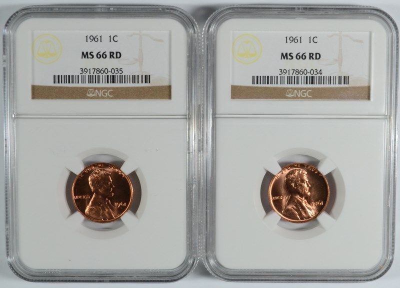 ( 2 ) PIECES 1961 LINCOLN CENTS, NGC MS-66 RED! THESE LOOK MS-67 RED!