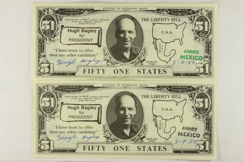 FOR PRESIDENT, 1984 BOTH SIGNED AND DATED, 1 BILL CRISP UNC THE OTHER HAS SMALL FOLDS IN ONE CORNER