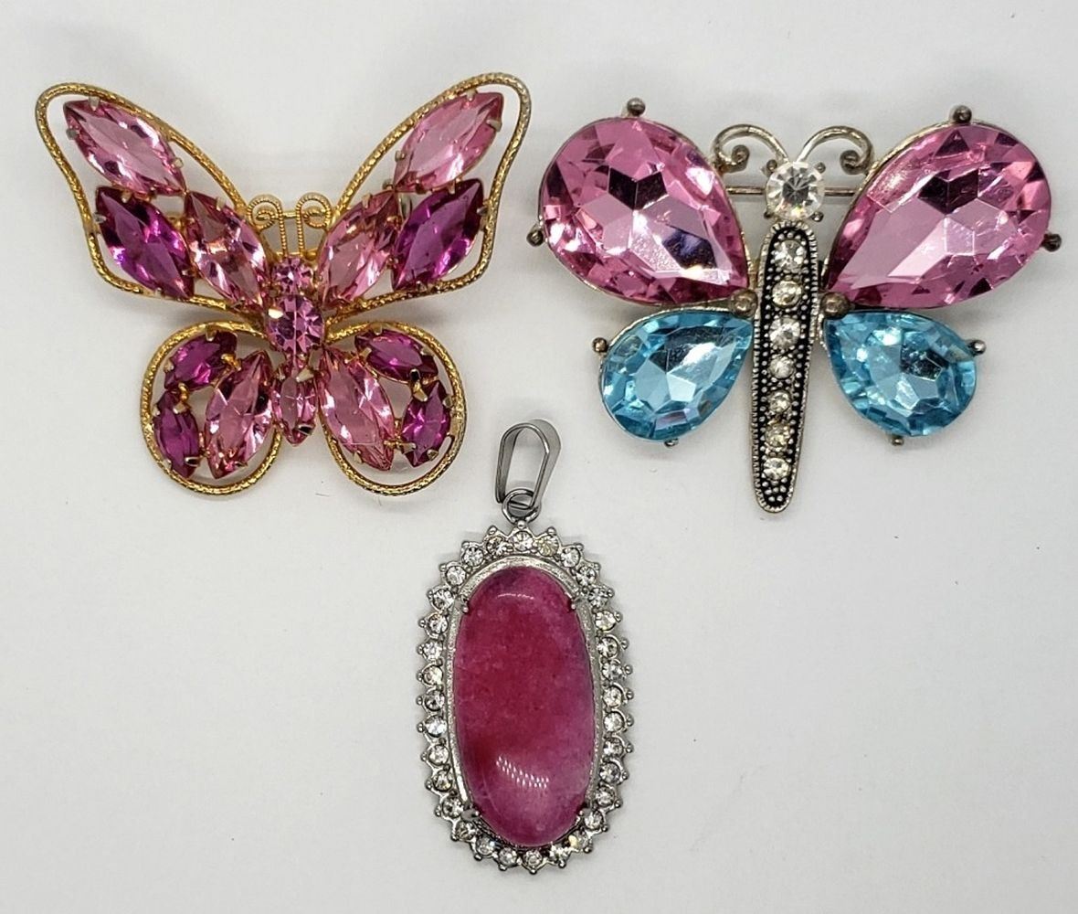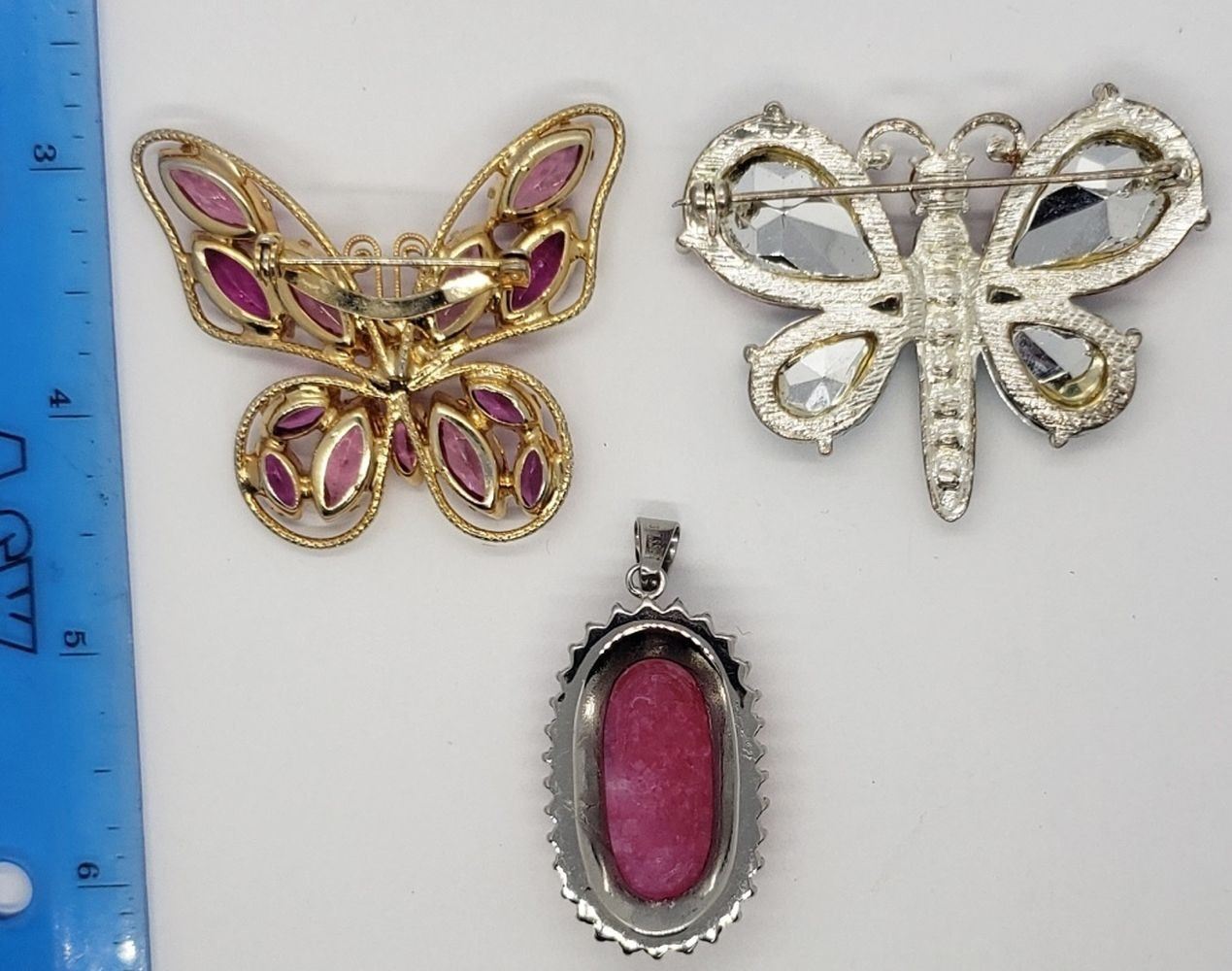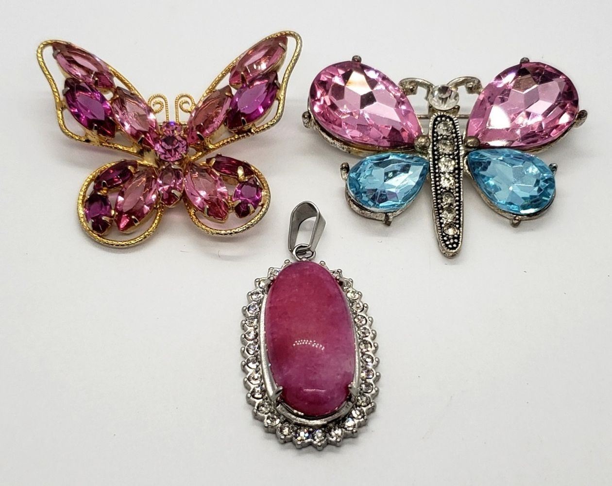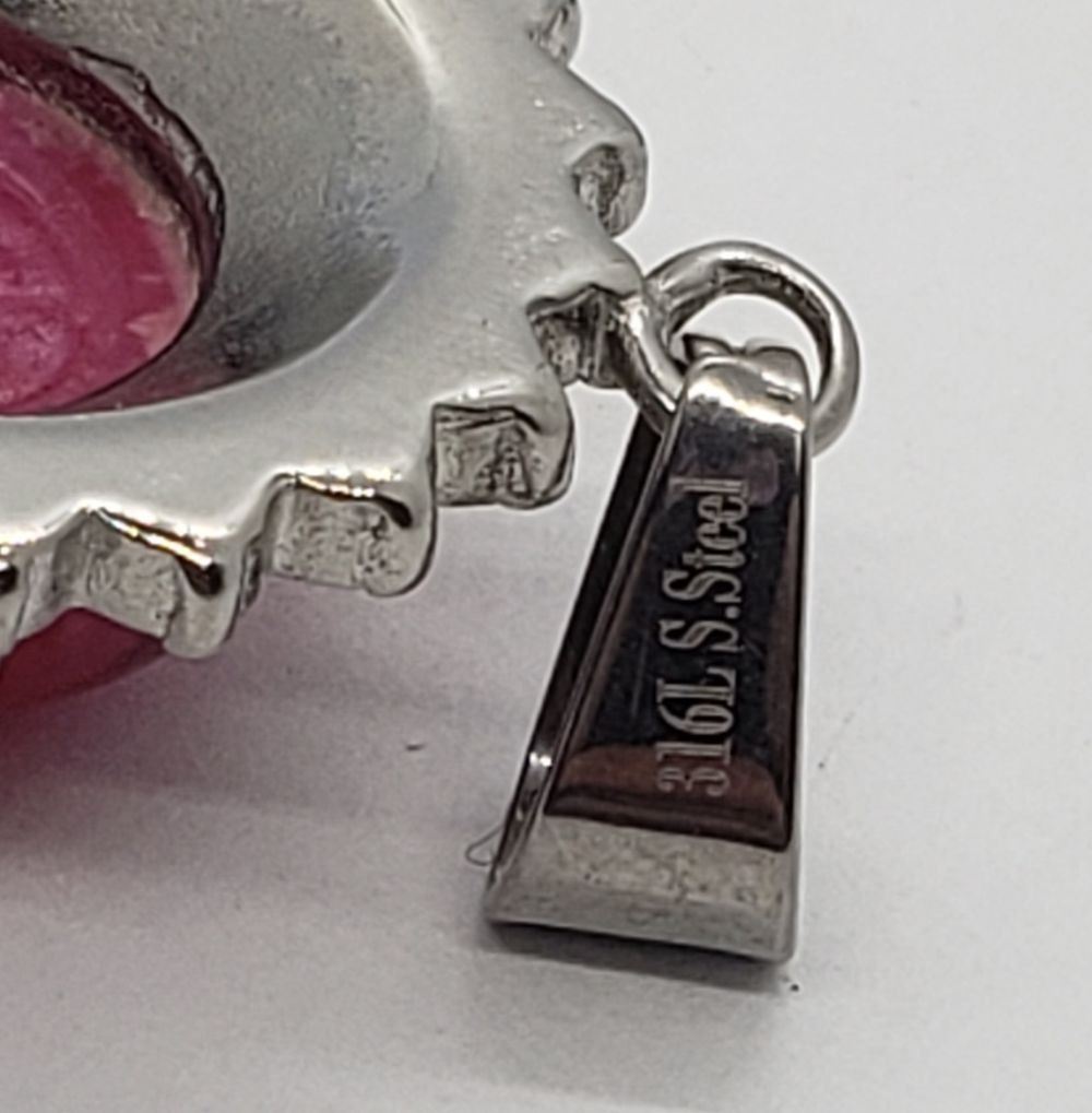 3161L STAINLESS STEEL NECKALCE WITH LARGE PINK CENTER