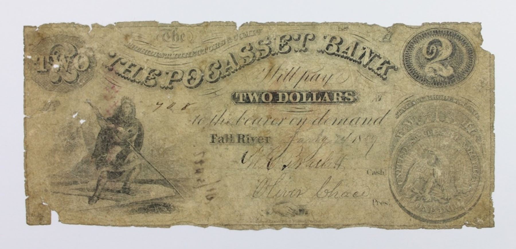 VERY RARE 1859 FALL RIVER, MASSACHUSETTS. LISTED AS SENC. IN HAXBY SOMEWHAT RAGGED BUT COMPLETE. SLIGHT PIN HOLES AND SPLITS. MAY BE THE ONLY ONE KNOWN. ESTIMATE: $250-$350