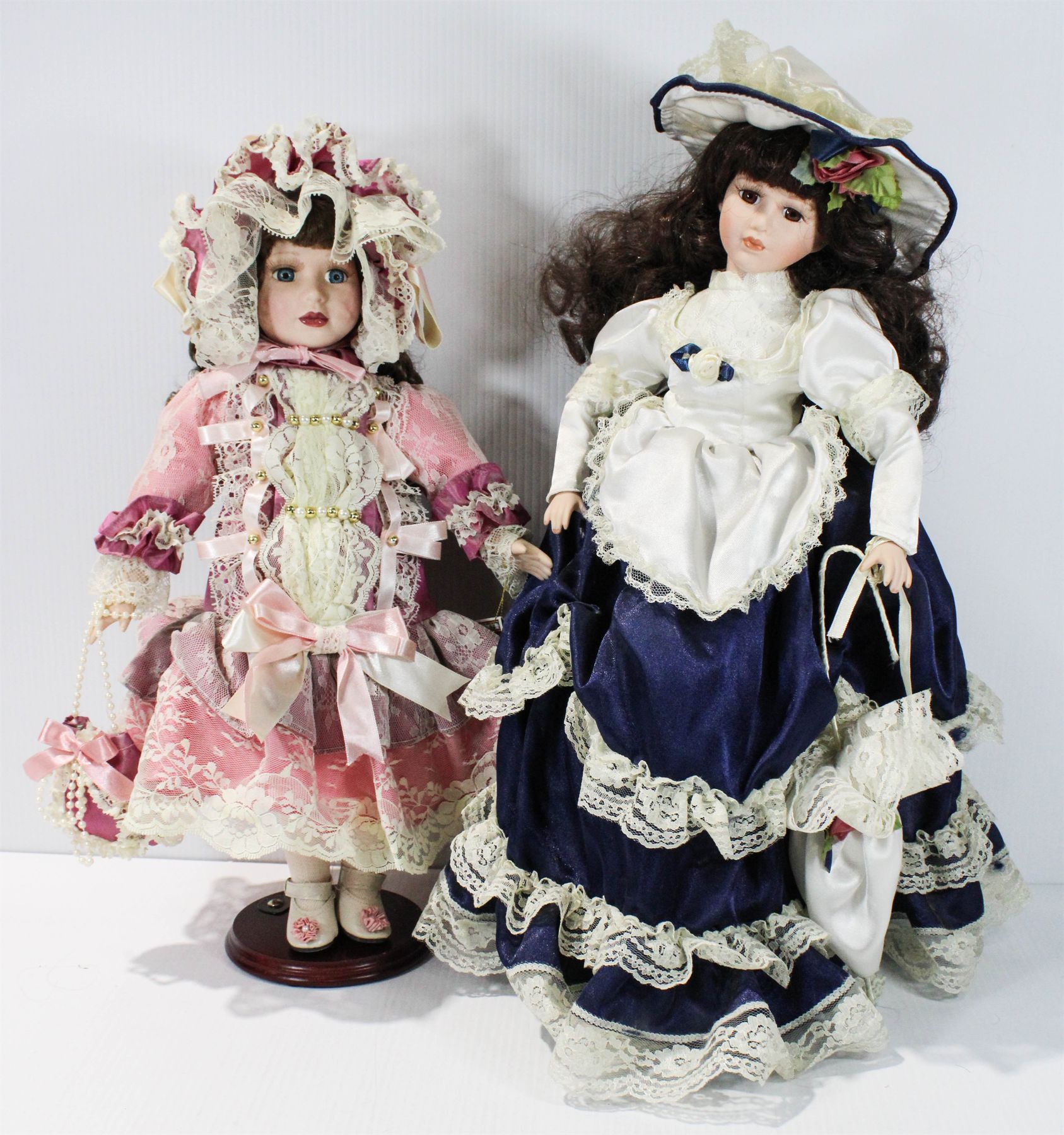 2 PORCELAIN DOLLS ON STANDS - ONE KATRINA MORANDI