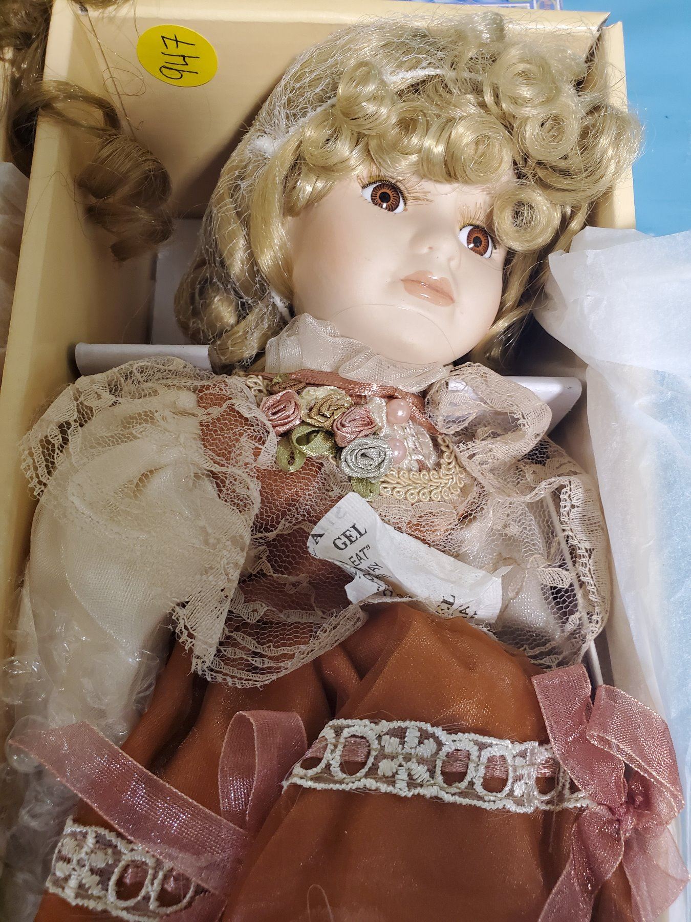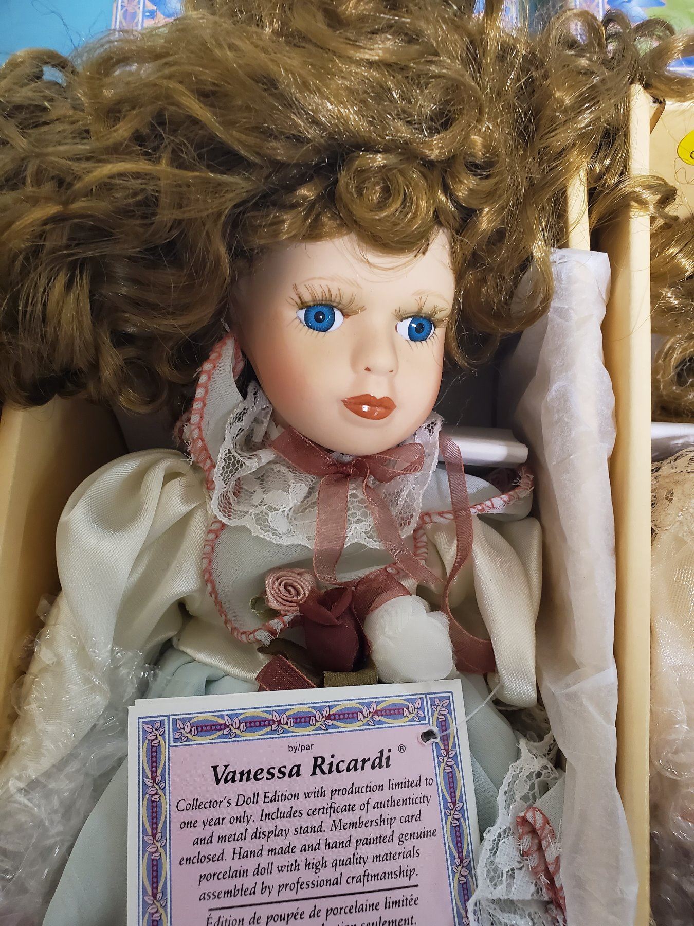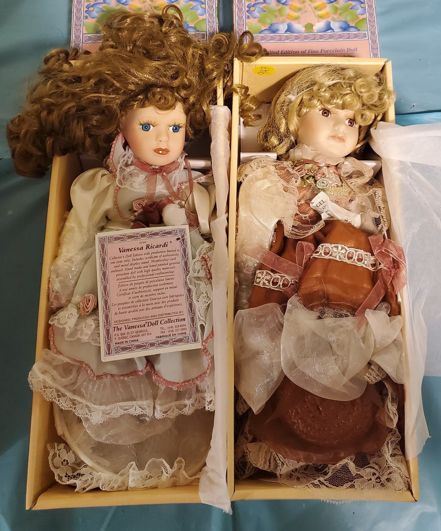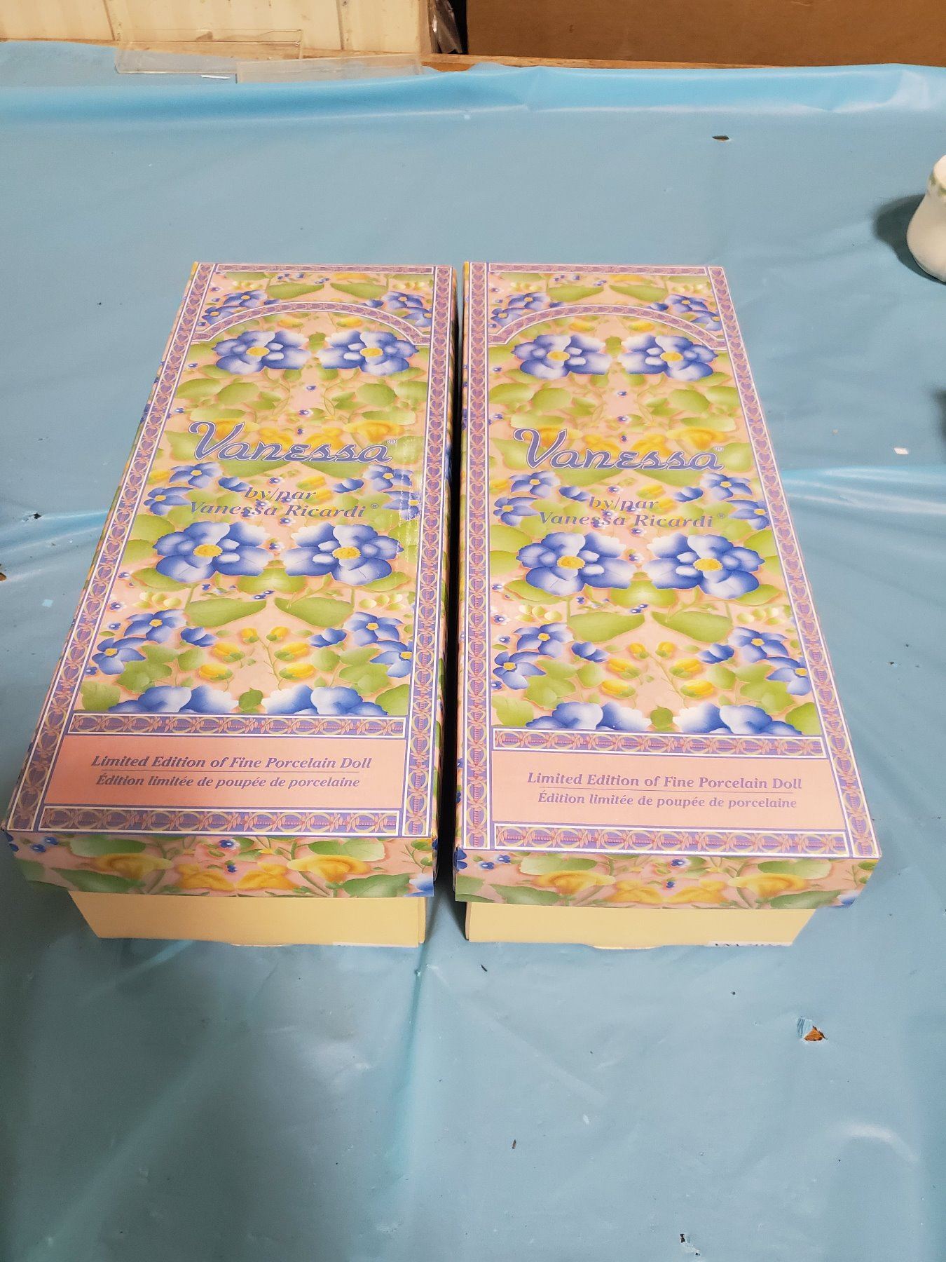2 PORCELAIN DOLLS "VANESSA" COME WITH ORIGINAL BOXES, EXCELLENT CONDITION
