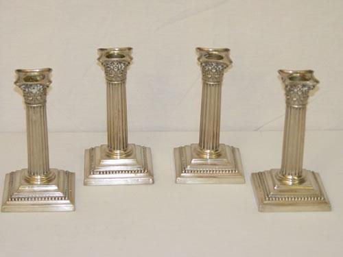 2 PR. 6" GORHAM SILVERPLATED COLUMNAR CANDLESTICKS- GORHAM ELECTROPLATE - SOME WEAR & LOSSES TO PLATING