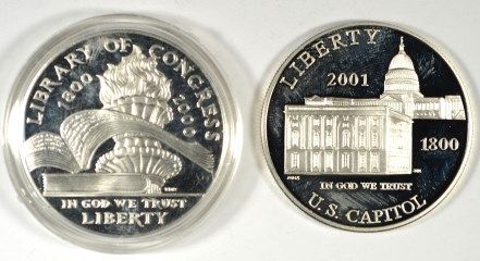 ( 2 ) PROOF COMMEM. SILVER DOLLARS, 2000 LIBRARY OF CONGRESS, 2001 U.S. CAPITOL