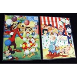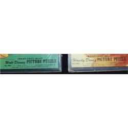 15" by 11 1/2" 2 Tray style puzzles: Howdy Doody 1952 "Look at Mr. Bluster" and Walt Disney 1952, with Goofy, Mickey, Donald Duck & nephews. Sequential no 2602 and 2603. Excellent condition.