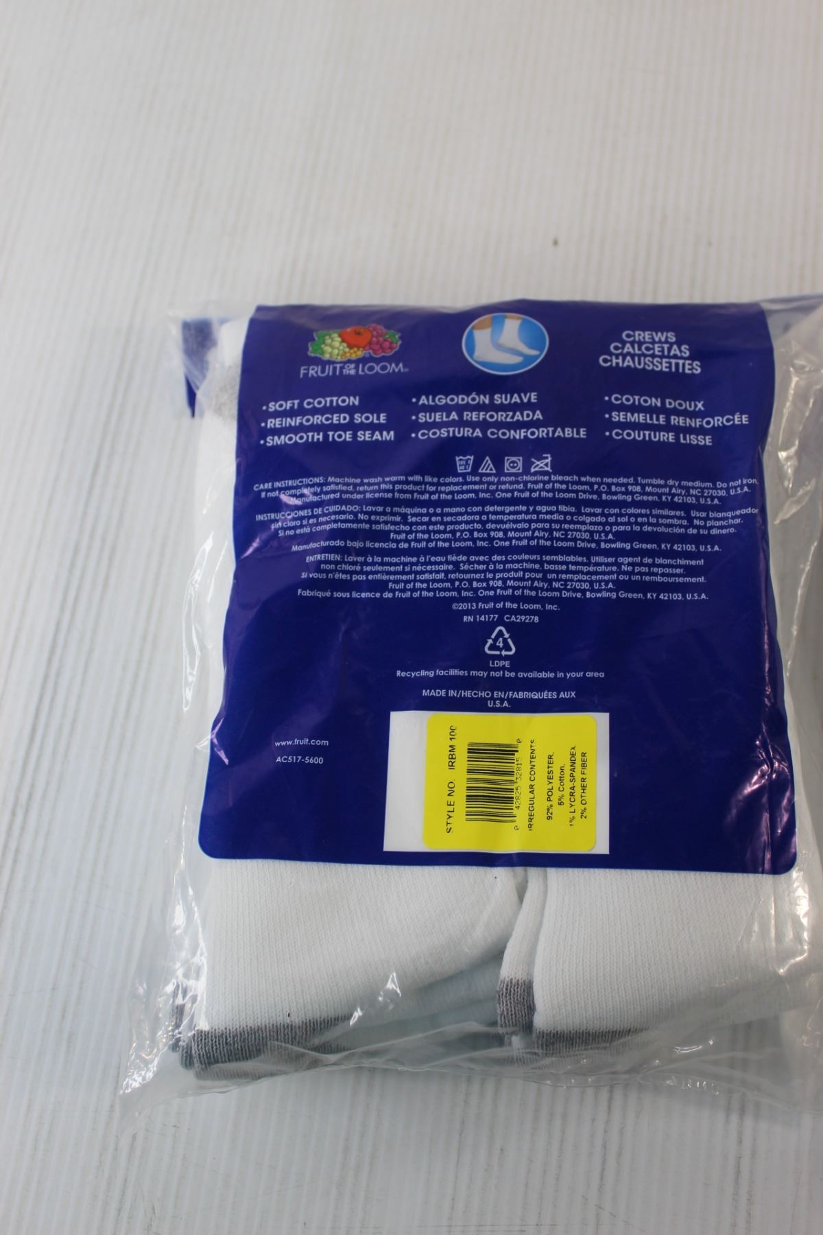(2) Packs Fruit of the Loom Socks