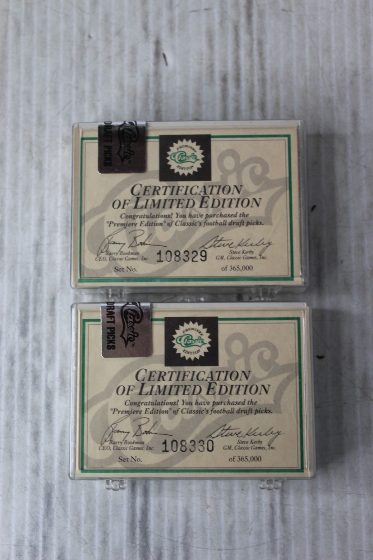 (2)Packs of 1991 Limited Edition Premiere Classic Draft Pick NFL Cards - W/ Certificates (NOS)