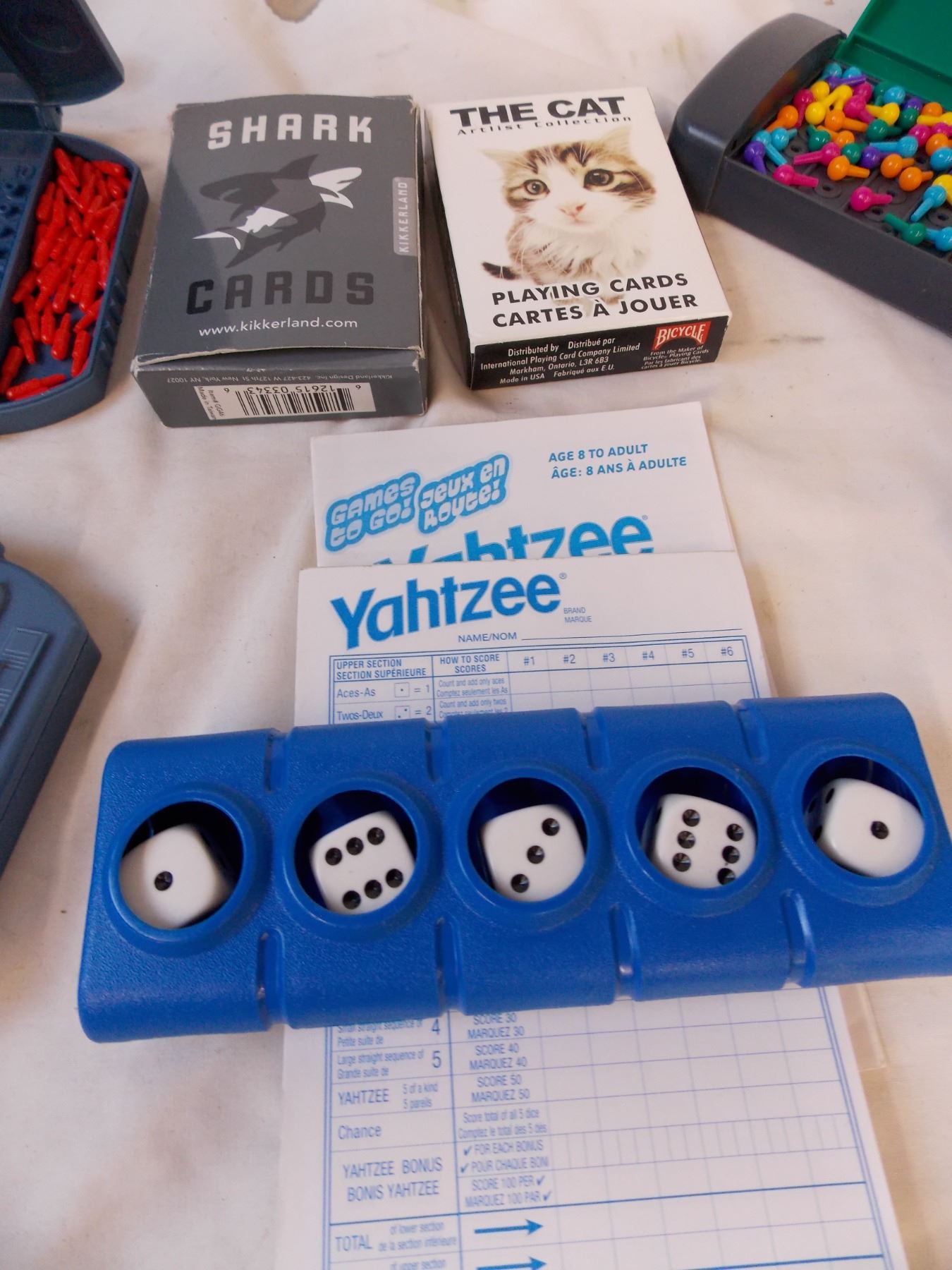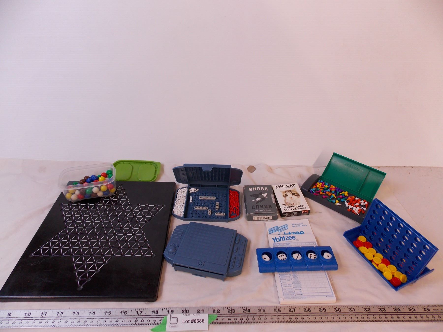 (2) Packs of Cards, Chinese Checkers + Assorted Travel Sized Games (Mastermind, Battleship, Etc)