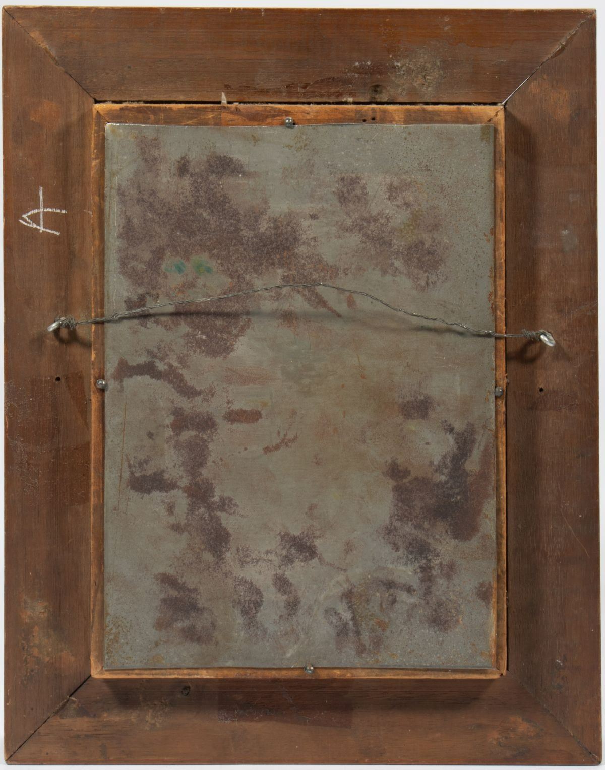 Both unsigned. 9in. x 6 3/4in. (panel); 10 1/4in. x 8 1/4in. (frame). 7 3/4in. x 5 1/2in. (panel); 11in. x 8 1/2in. (frame). Paintings in good condition; small spots of wear.