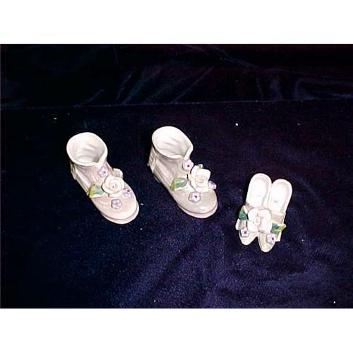 </font></strong>2 Pair Decorative Capidomonte Porcelain Shoes. The largest pair (1.5 x 2.5) say Japan on the heel. The tiny pair are made together and are about 2" long. Flowers look pretty good. Sweet items!</font>