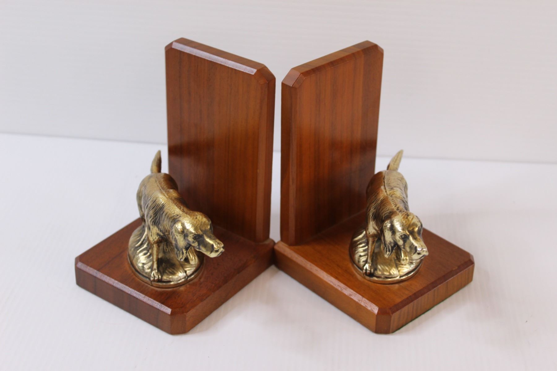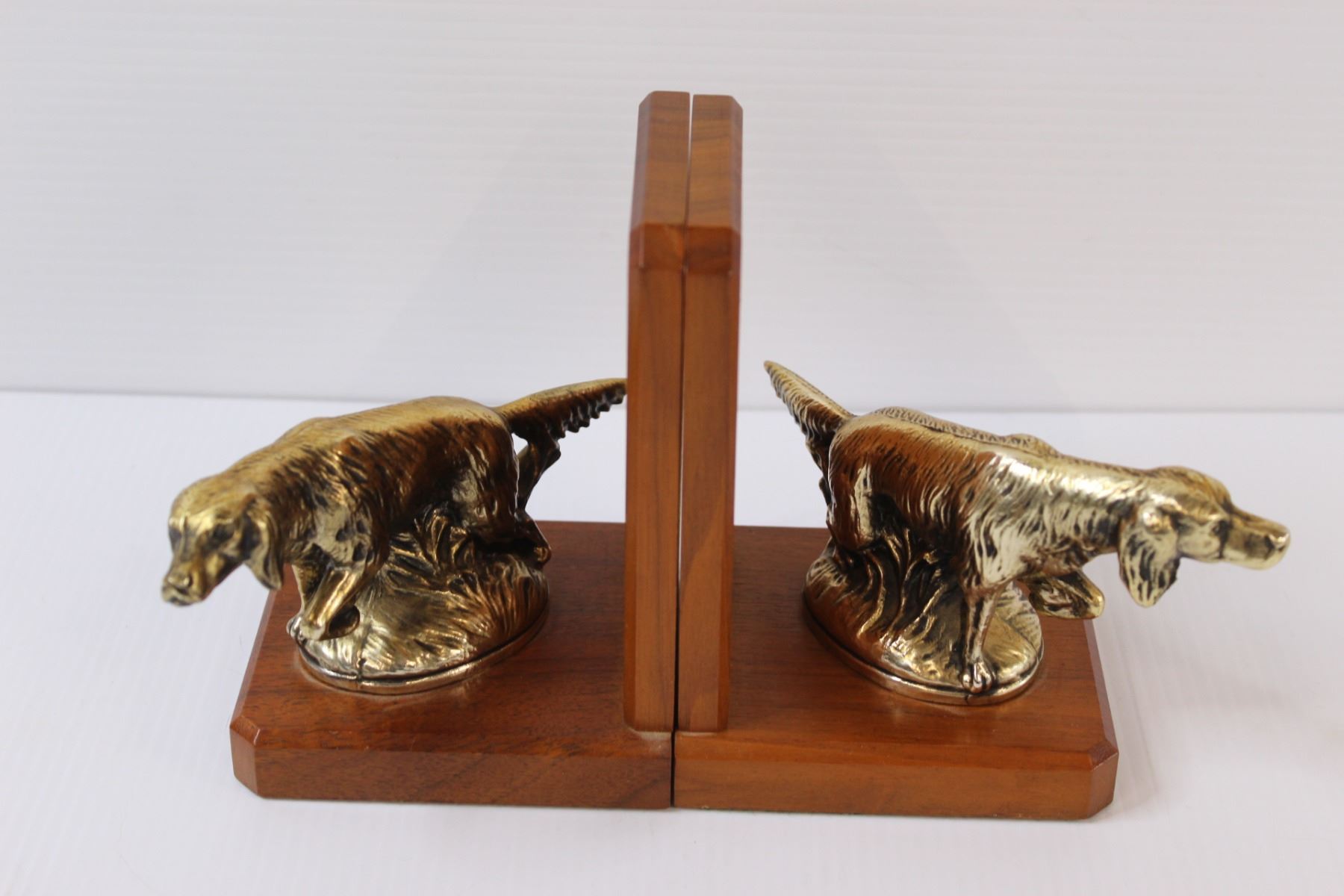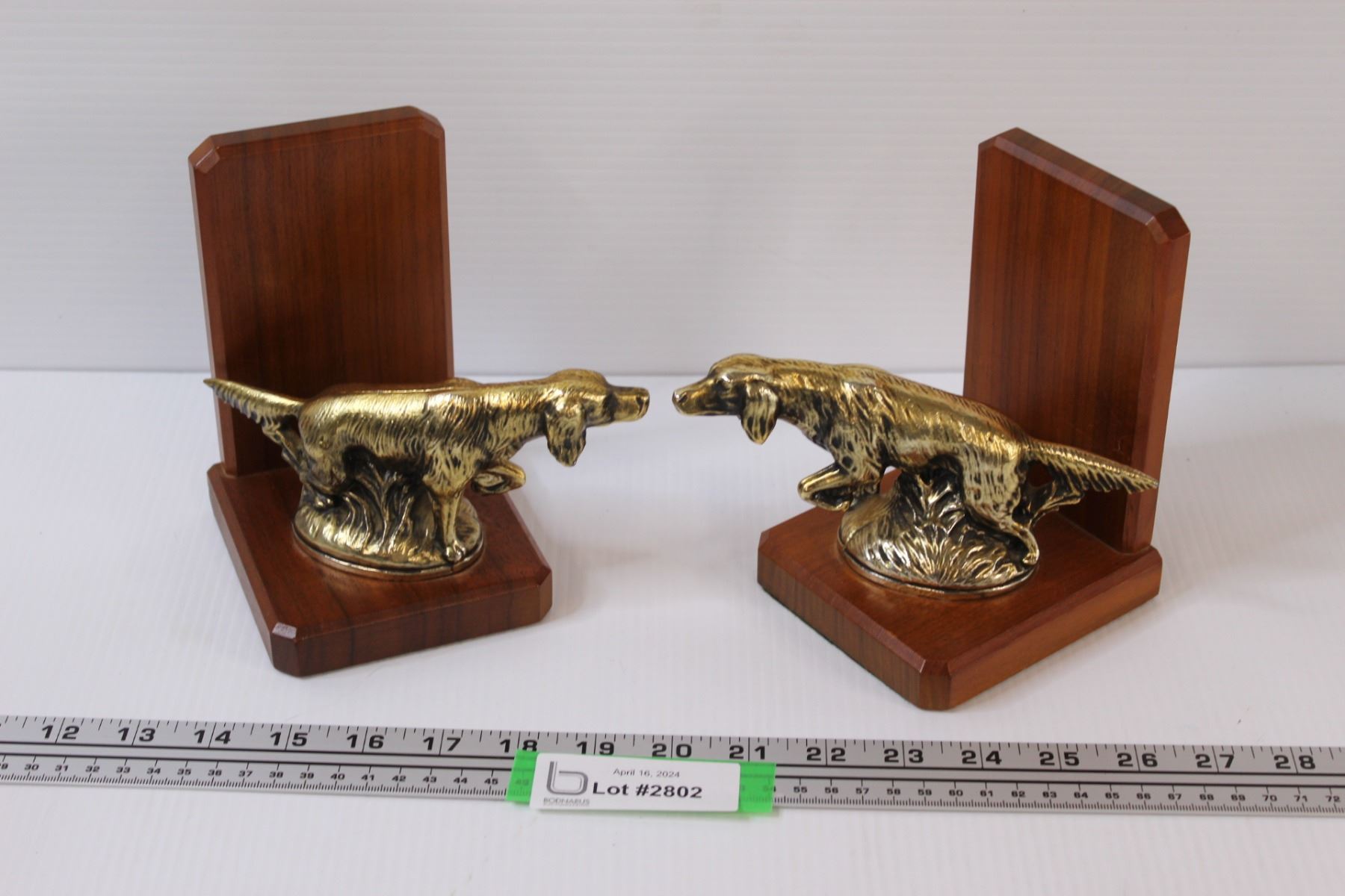 (2) Pair Wood and Bronze Irish Setter Book ends