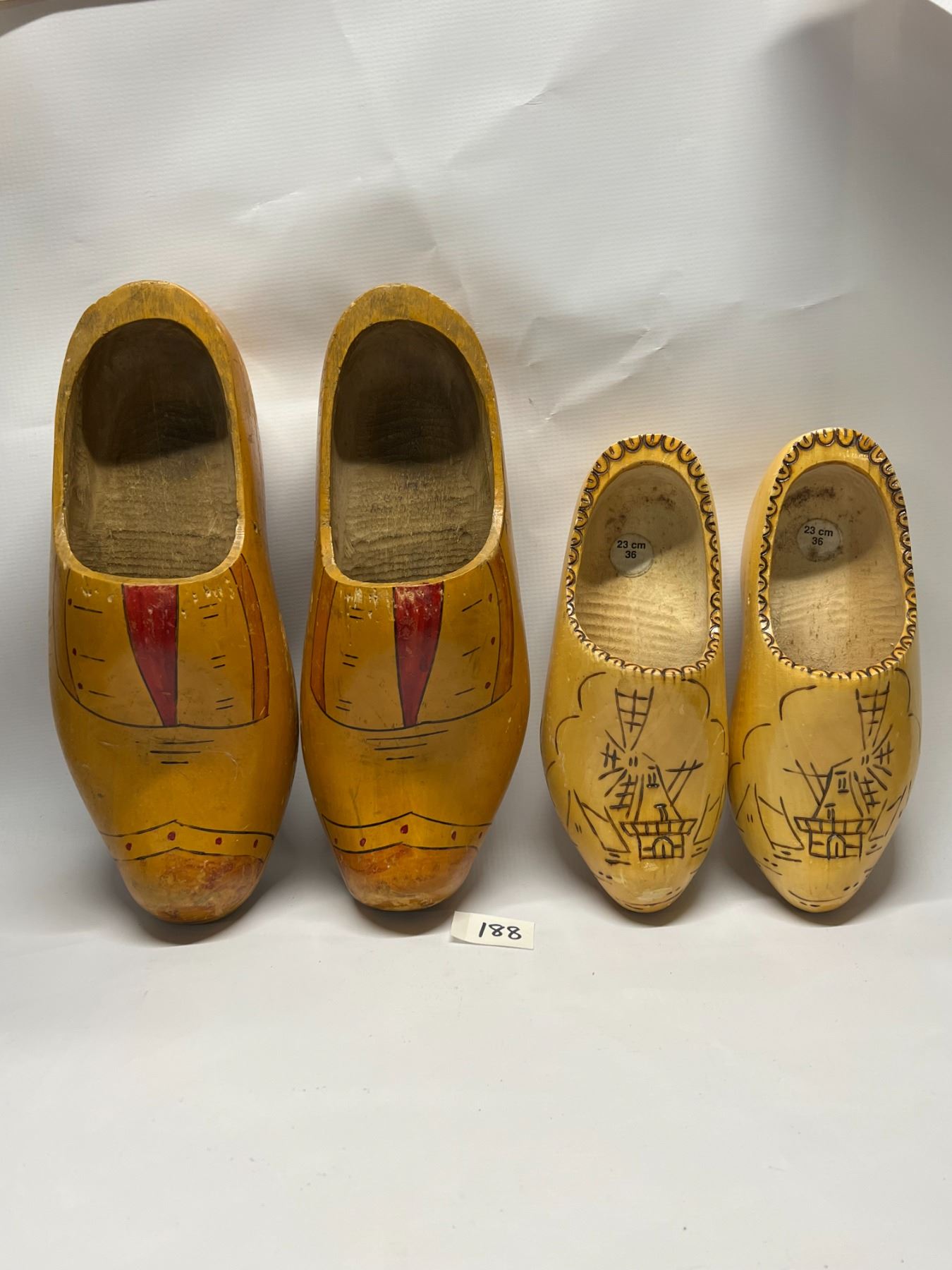 2 Pairs Dutch Wooden Clogs Shoes (largest appr: 12.5" x 5")