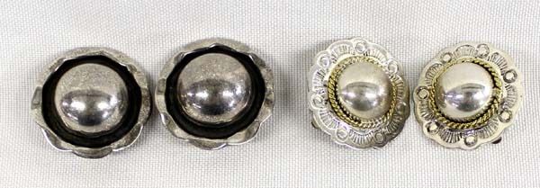 2 Pairs of Mexican Sterling Silver Clip-On Earrings, one pair is Taxco, both are stamped .925, measures 1''D, 26.39g in total wt.