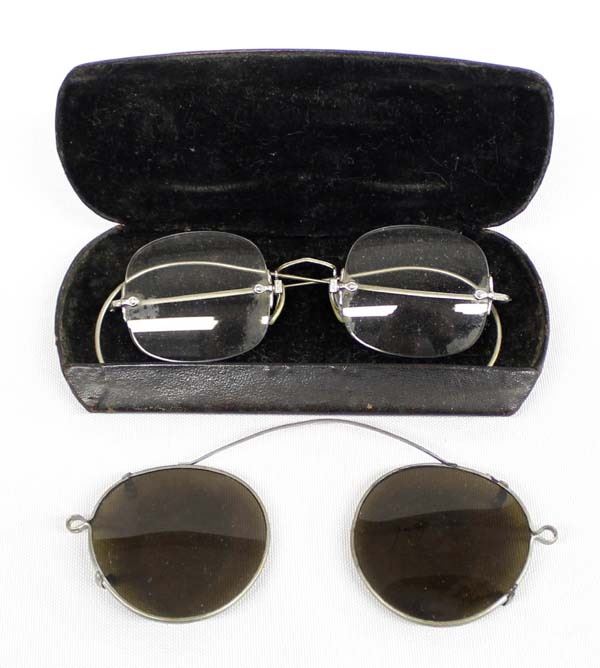2 Pairs of Antique Eyeglasses, largest pair measures 5''L, eyeglass is marked ''E.G. Nadeau, M.D. Green Bay, Wis.'', nosepiece on one is marked 14K