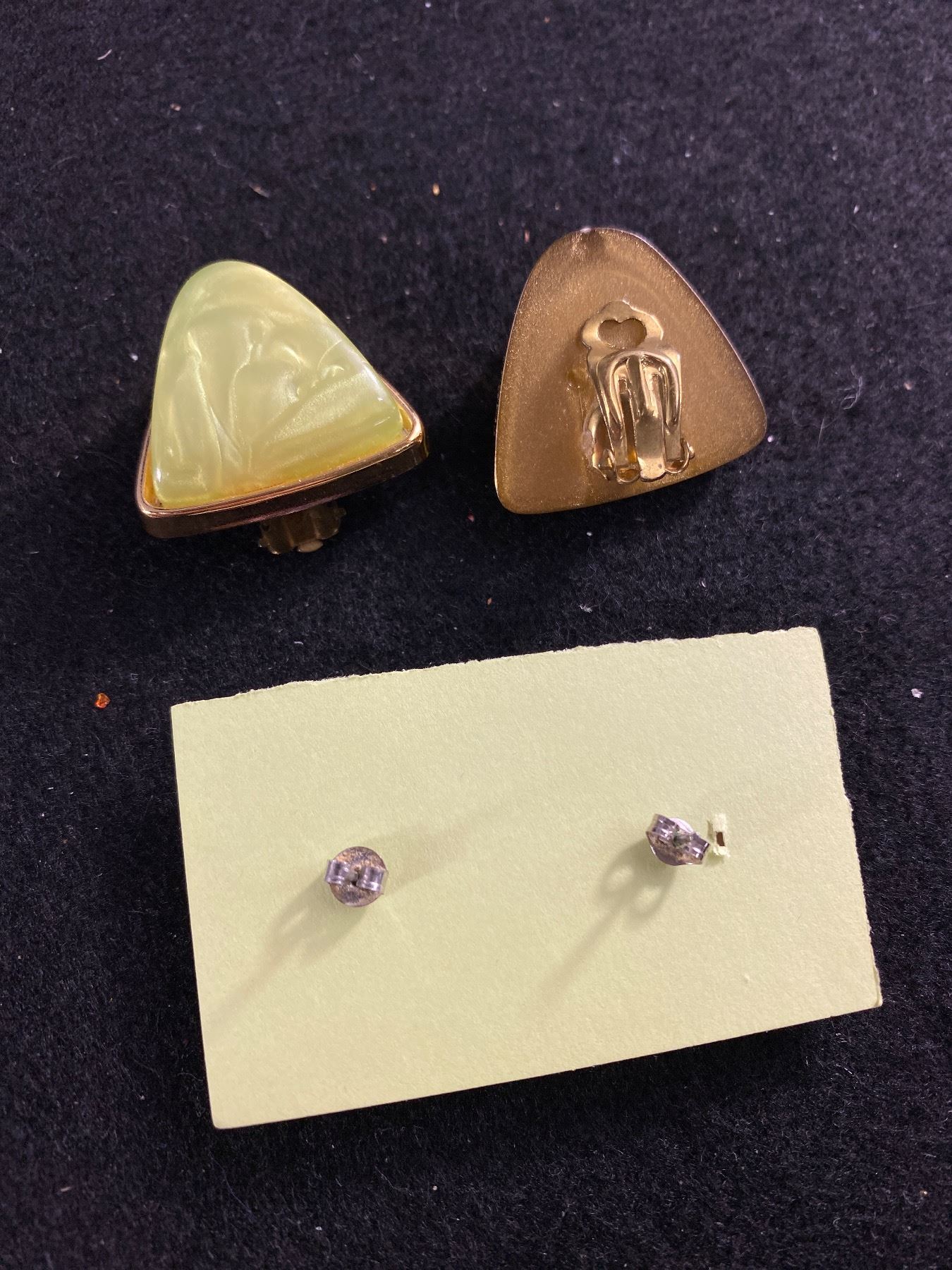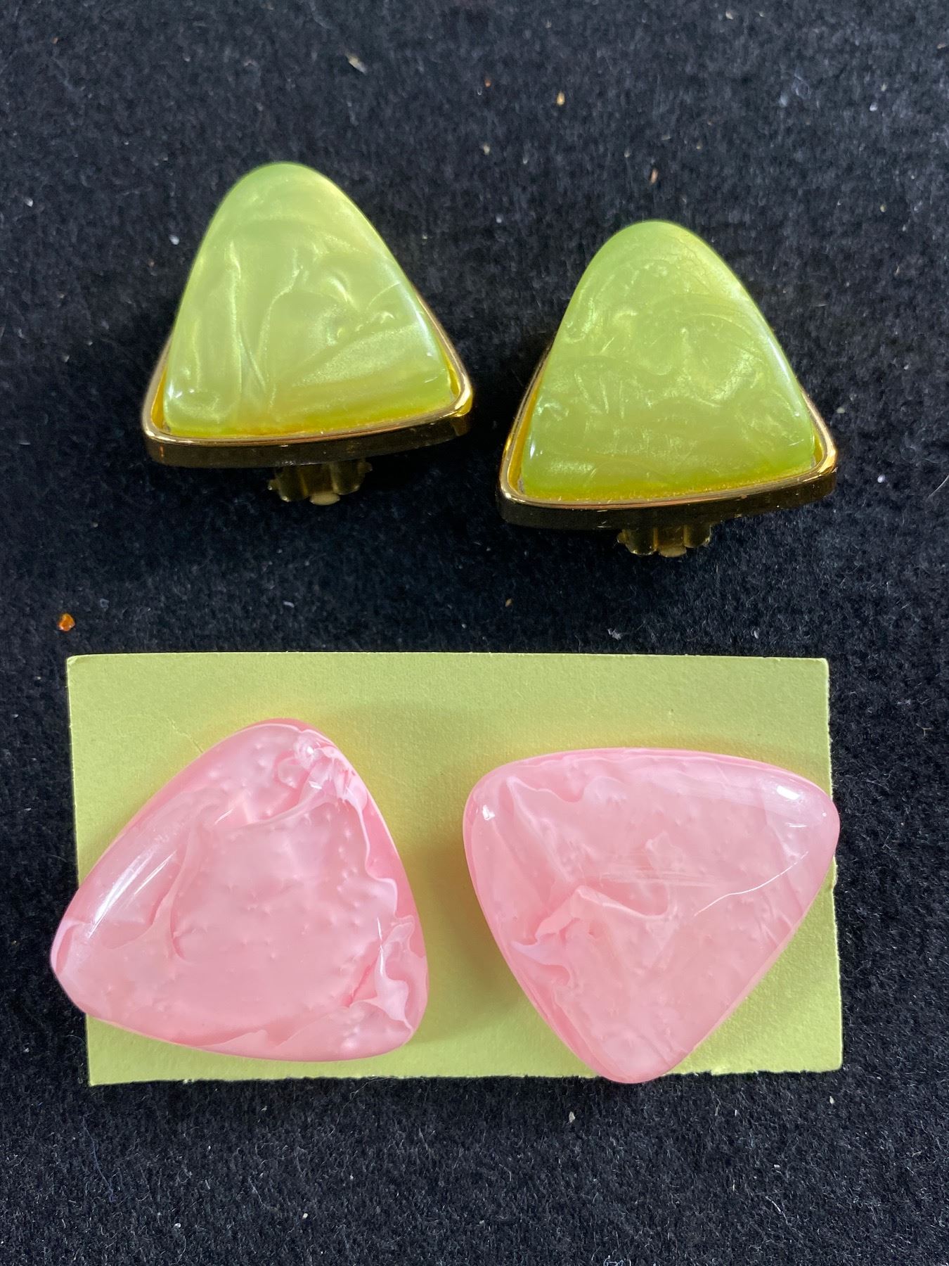 2 Pairs of Mid Century Plastic Earrings. Green are Clip on, Pink are Pierced